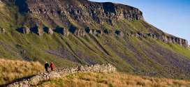 Ingleborough, one of Yorkshire’s Three Peaks, cuts a distinctive shape when viewed from the North and West, its table-top plateau ending abruptly in a series of steep escarpments.