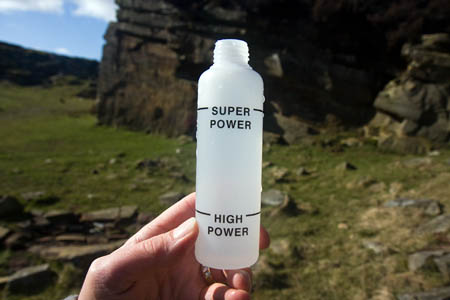 A High Power Heatpack is placed in the bottom of the outer container of the flask, which again has a Neoprene sleeve, and the measured 40ml of water poured in. The Super Power Heatpack should not be used with the flask.