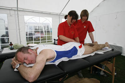 The ambulance staff in the first-aid tent were kept busy, with a plethora of minor injuries, chiefly leg gashes, cut hands, muscle strains and a few looking on the verge of hypothermia, though exhaustion was probably the real problem.