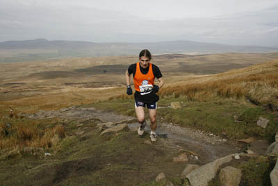 Andy Peace, the course record holder and another Bingley Harrier, performed strongly on the climb up to Whernside’s 736m (2,415ft) top, and put himself into fourth place, a minute and a half behind the race leader.