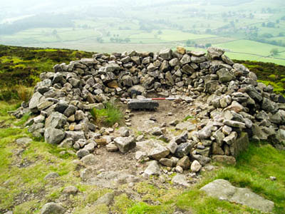 “Much of this cairn, which is now about 11m [36ft] in diameter, still survives but in recent years it has suffered a lot of disturbance due to people using stones from it to make modern cairns and wind breaks. Another smaller historic cairn lies further along the ridge at Old Pike and that has also lost some of its stones.