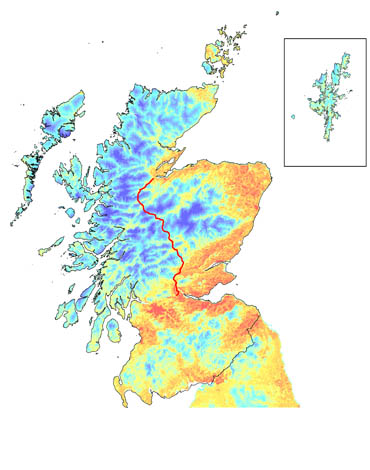 The JMT published a map (right) showing Scotland’s wild land – areas relatively unaffected by human intervention – on a gradated scale from deep blue, for the wildest areas, to red in the most built-up areas. The red line indicates the route of the Beauly to Denny line.