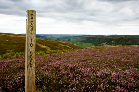 The Coast to Coast route crosses the heather-clad North York Moors before reaching its end on the North Sea shore