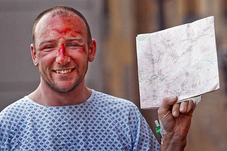 He described how he desperately tried to lose speed as he tumbled over a succession of crags, alternatively hitting the ground and freefalling.