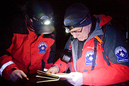 Steve Raynor arrives. He will be navigating with Ken and Abbie tonight. In his 50s, Steve is relatively new to the team and is still in training. He confides: “If Ken says something, you take notice.” 38 years of experience guide Ken’s every step on the mountain.
