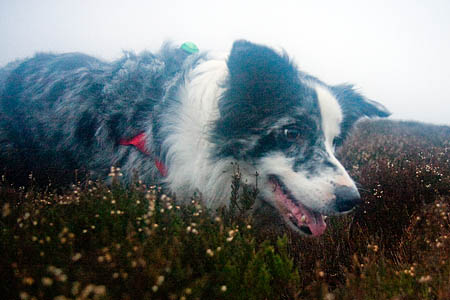 We can hear other team members not far away and then Abbie returns to Ken and rotates 360 degrees before heading off back out on to the moor. That’s her way of ‘indicating’ – she doesn’t bark like most Sarda dogs. Has she just found the other team members? She’s back again, twirling at Ken’s feet, so we decide to investigate in the direction she’s taking us.