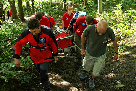 Twelve volunteer from the Calder Valley SRT took part in the rescue at Hardcastle Crags, a largely wooded area in a valley near Hebden Bridge, with 40km (25 miles) of paths running through it.