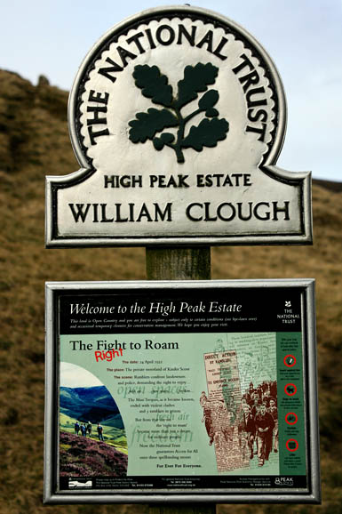 The National Trust owns important sites such as William Clough on Kinder Scout, site of the 1930s mass trespass