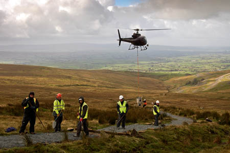 The 140 tonnes of stone was airlifted into position by a helicopter carrying almost a tonne at a time in a hopper.