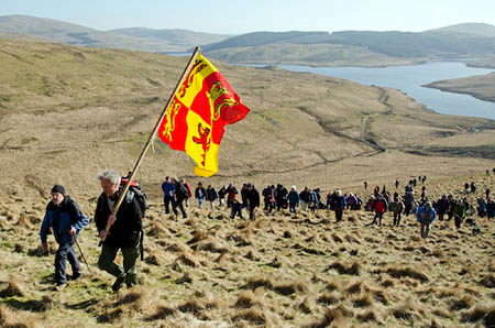 The rally was held in the foothills of Pumlumon in the heart of the Cambrian Mountains and drew participants from as far away as Greater Manchester, with Perrin riding to the event on horseback.
