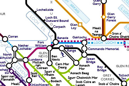 26 October 2012All my OS maps are now heading to the bin, all I need is this handy map and an oyster card! Great idea Peter, highland/underground fusion!