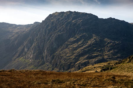 Jack’s Rake rises diagonally across the crag above Stickle Tarn and has an exposed section near its top.