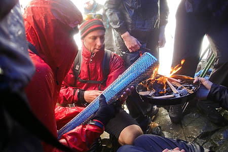 Members of the Wasdale Mountain Rescue Team accompanied four young Scout Association members and torchbearer Karl Hinett to the summit of Scafell Pike where a firelighting steel was used to create the spark for the torch.