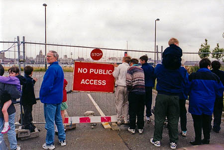 The public was barred from the Twelve Quays route when the Queen Elizabeth II sailed into the Mersey in 2000