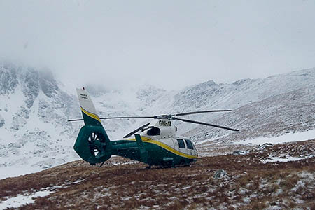 A team spokesperson said: “The man was treated for his injuries, splinted, placed into a stretcher and then lowered down the snow slope to a waiting air ambulance.