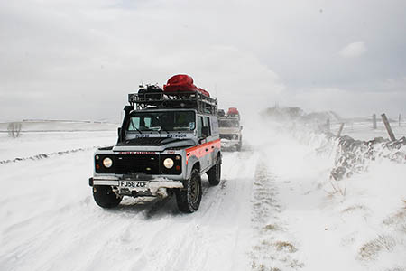 Martin Gorman, the team’s press officer, said: “After collecting a significant amount of shopping from DCC, we got as close as we could in our Land Rovers before we had to abandon the vehicles and carry the supplies the last 2km on foot through deep snow driven by strong winds.