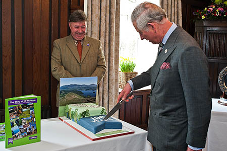 The Prince of Wales cuts a cake celebrating HF Holidays’ 100 years, watched by chief executive Brian Smith. Photo: Graham Edwards
