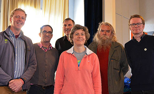 Kate Asbrook with, from left, Jon Stewart, Phil Moody, Keith Warrender, Terry Howard and Boff Whalley. Photo: Keith Warrender