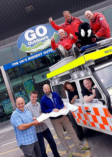 Glossop Mountain Rescue Team members join, from left, Chris Roberts and Rob Sykes of Mammut, Andrew Denton, Britain on Foot, Amanda Searle from Walk4life and Simon Lee from GO Outdoors