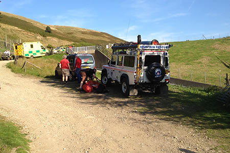 “The air ambulance was called in, but at that location the track skirts along the steep side of the valley, so the only place it could land was on a flat area of ground some distance below the site.