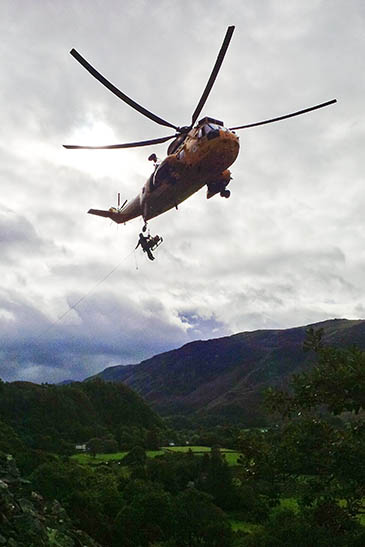 The team requested the help of a helicopter and a Sea King from RAF Leconfield in east Yorkshire, which was training nearby with the Wasdale team, flew to the site within five minutes.