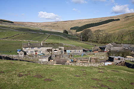 Pass through a gate then continue on the green track, with a wall joining from the right. Another gate leads into the large field encountered at the beginning of the walk. Continue downhill to the hamlet of Foxup.