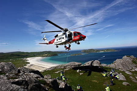 The Stornoway helicopter is used regularly on mountain rescue callouts in the Western Isles and north-west Scotland, supporting voluntary mountain rescue teams in those areas.