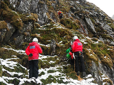Mr Lloyd said another team of four went to the site this morning. “Once again they had to cope with poor steep ground but eventually were able to climb up and rescue the little bitch,” he said.