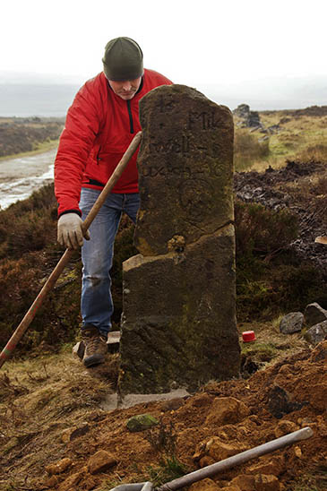 Peak District national park rangers and members of the Time Travellers, used stainless steel rods and resin to secure it in place.
