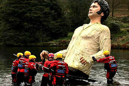 The charity called in Kinder and Glossop Mountain Rescue Teams and Cheshire Search and Rescue to take the figure from the ornamental lake.