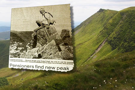 The party was being led by Bernard Wright, a former motor oils scientist from Tarvin in Cheshire. As they headed up to the main Berwyn ridge they were confronted by a peak that was absent from their Ordnance Survey maps.
