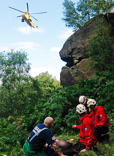 A spokesperson for the Mytholmroyd-based team said: “Due to his injuries and the awkward location of the casualty, it was decided that rather than attempting a steep stretcher carry back up the crag, the safest and quickest way to get him to hospital for treatment was by air.