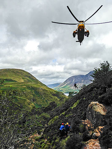 A Sea King search and rescue helicopter from RAF Boulmer in Northumberland flew to the site and airlifted him to Cumberland Infirmary, Carlisle, for further treatment.