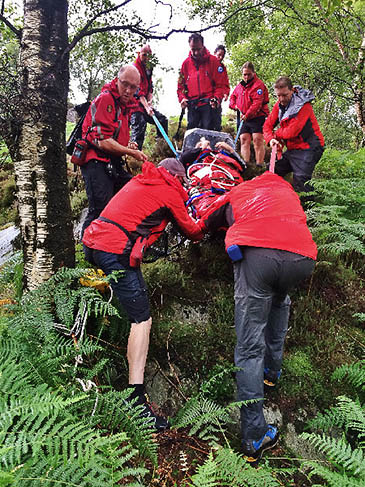 “The casualty was then given analgesia, splinted and packaged for the long carry down through chest high bracken and slippery boulders.