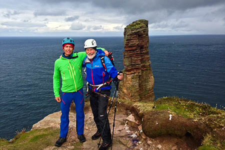 Sir Chris Bonington and Leo Holding prepare for their attempt on the Old Man of Hoy. Photo: Berghaus
