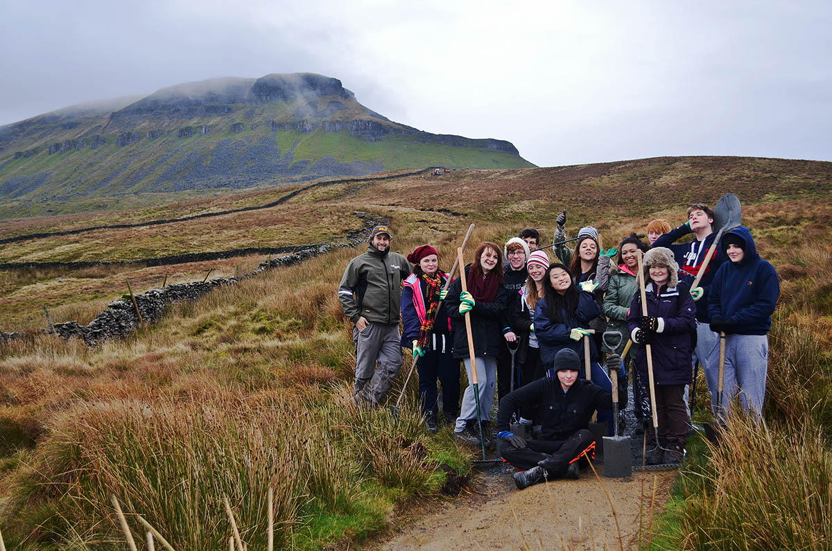 A group of teenagers helped repair a Yorkshire Dales hillside footpath – then tackled a sponsored walk up the fell to help future conservation work.