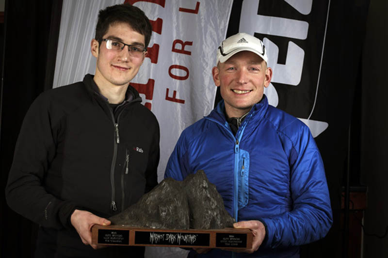Adam Perry, left, and Kim Collison with the winners' trophy. Photo: Ian Corless/Marmot Dark Mountains