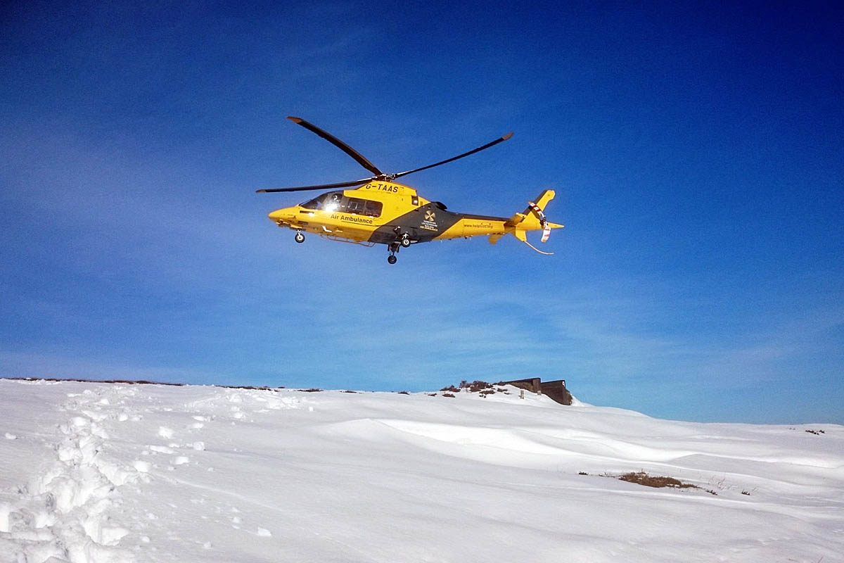 The Derbyshire, Leicestershire & Rutland Air Ambulance was unable to land in deep snow. Photo: Glossop MRT