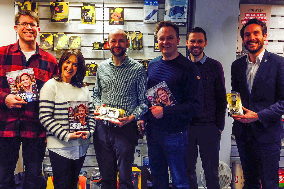 Celebrating the deal: from left, Andi Hayman, Rosker; Stephanie Briggs, Spring PR; Chris James, Scout Association; Chris King, Rosker; Jake Wiid, Strong Roots Training; Paul Andrews, Scout Association