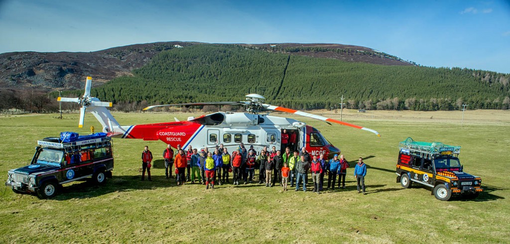 Aberdeen and Braemar Mountain Rescue Teams with the Coastguard S-92 crew during familiarisation training. Photo: Robert Reglinski