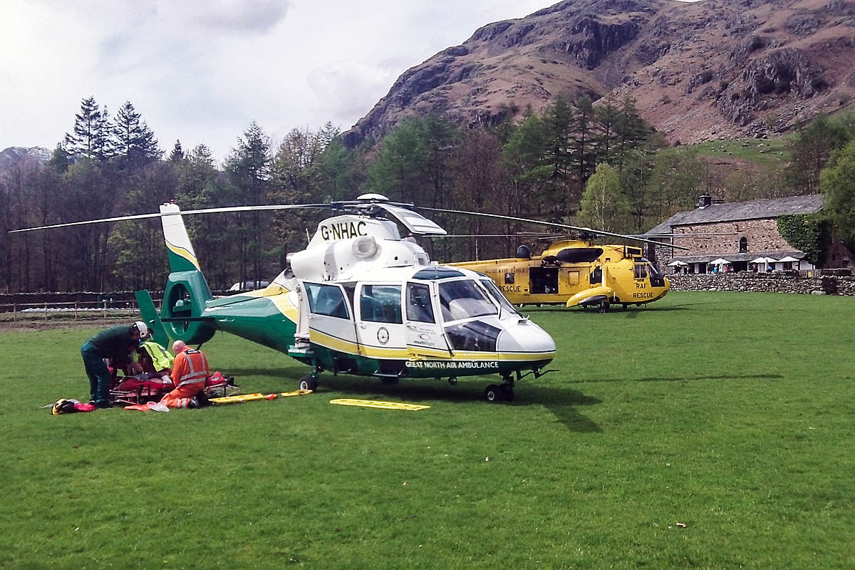 The Great North Air Ambulance and an RAF Sea King helicopter also flew to the site near Stickle Tarn above Great Langdale.