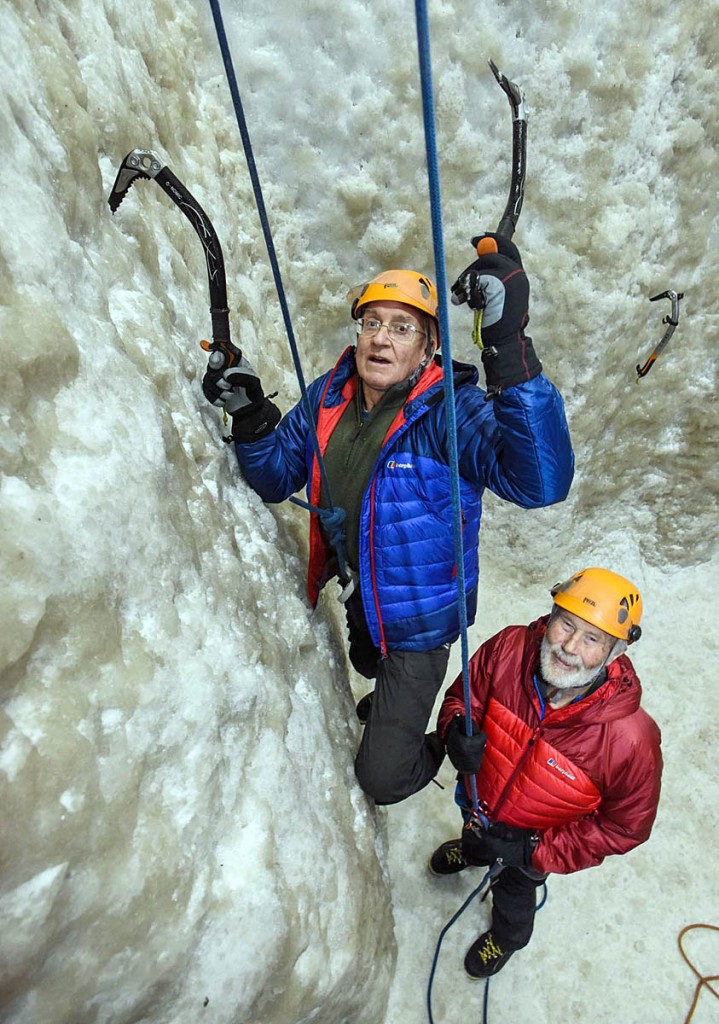 Mountaineering legends Sir Chris Bonington, right, and Doug Scott renew their climbing partnership to raise relief funds in the wake of the Nepal earthquakes. Photo: Paul Kingston/NNP