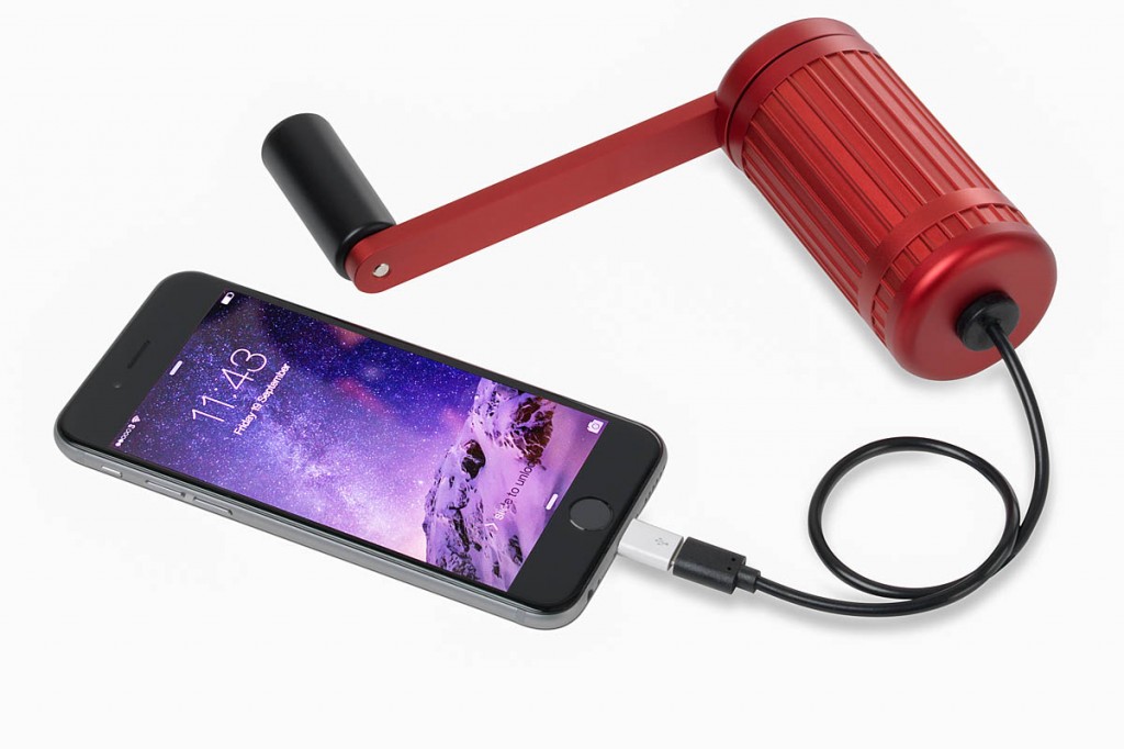 “Whether you are part of a rescue team on a mountain or in distress out at sea, just a few minutes of cranking can provide enough charge to revive a completely flat smartphone and enable a potentially lifesaving call to be made.