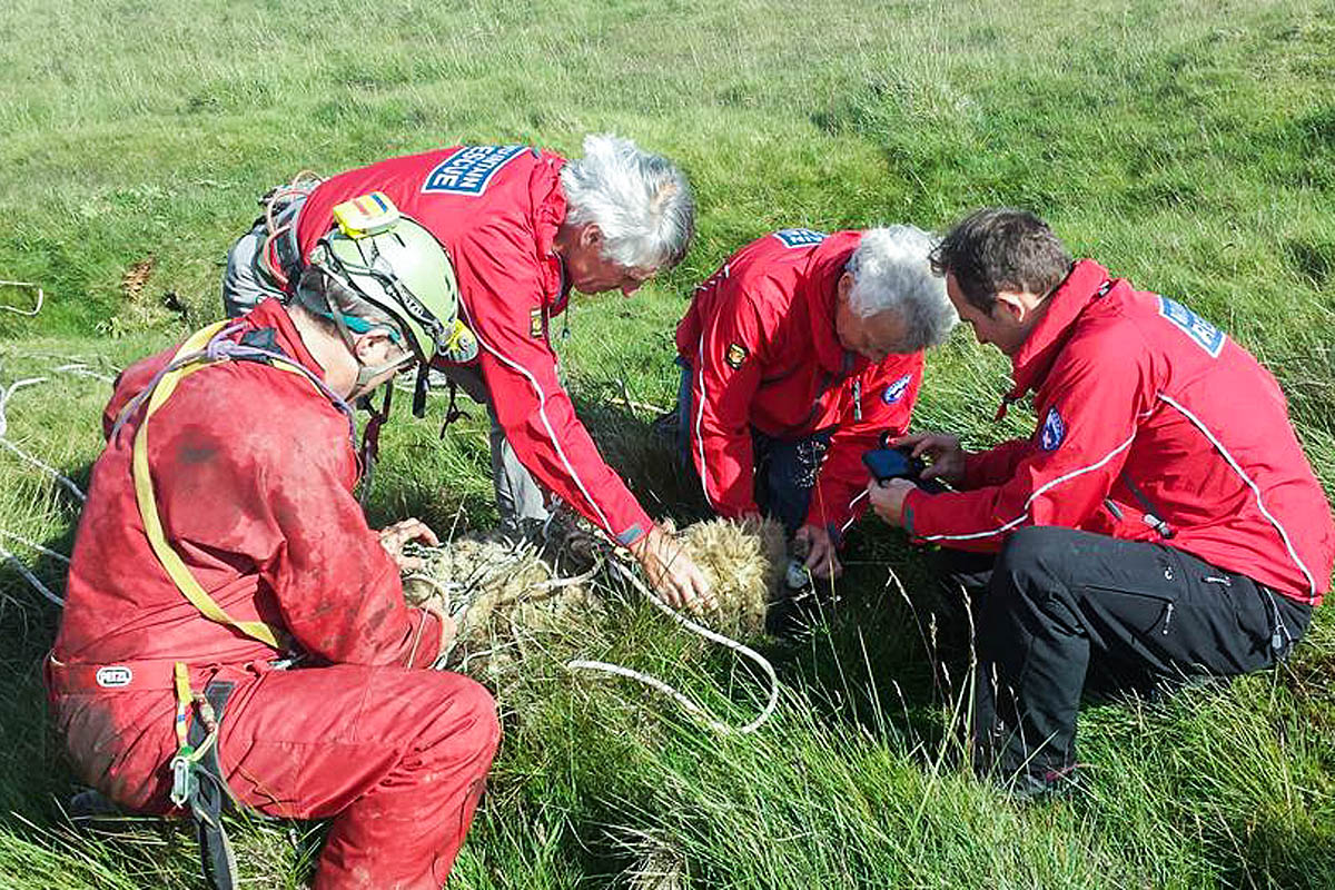 Upper Wharfedale Fell Rescue Association was alerted on Saturday to the plight of a sheep that was trapped in a narrow cleft on a Yorkshire Dales hillside.