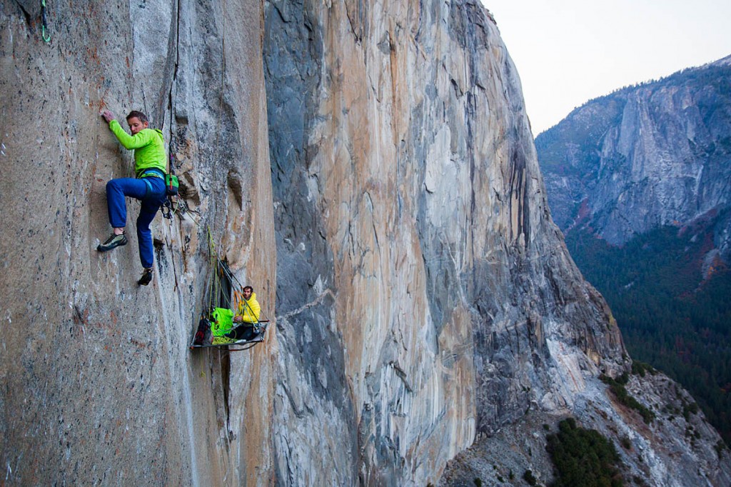 Tommy Caldwell on the first free ascent of the Dawn Wall in the Yosemite Valley. Photo: Jeff Johnson