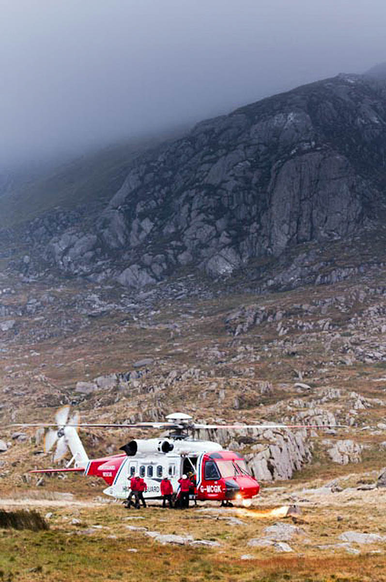 “As the stretcher party was making its way down the steep descent, the mist thinned to give improved visibility. Fortunately, Bristow’s helicopter was able to fly via the Ogwen Valley en route from the Lake District to its home in Caernarfon.