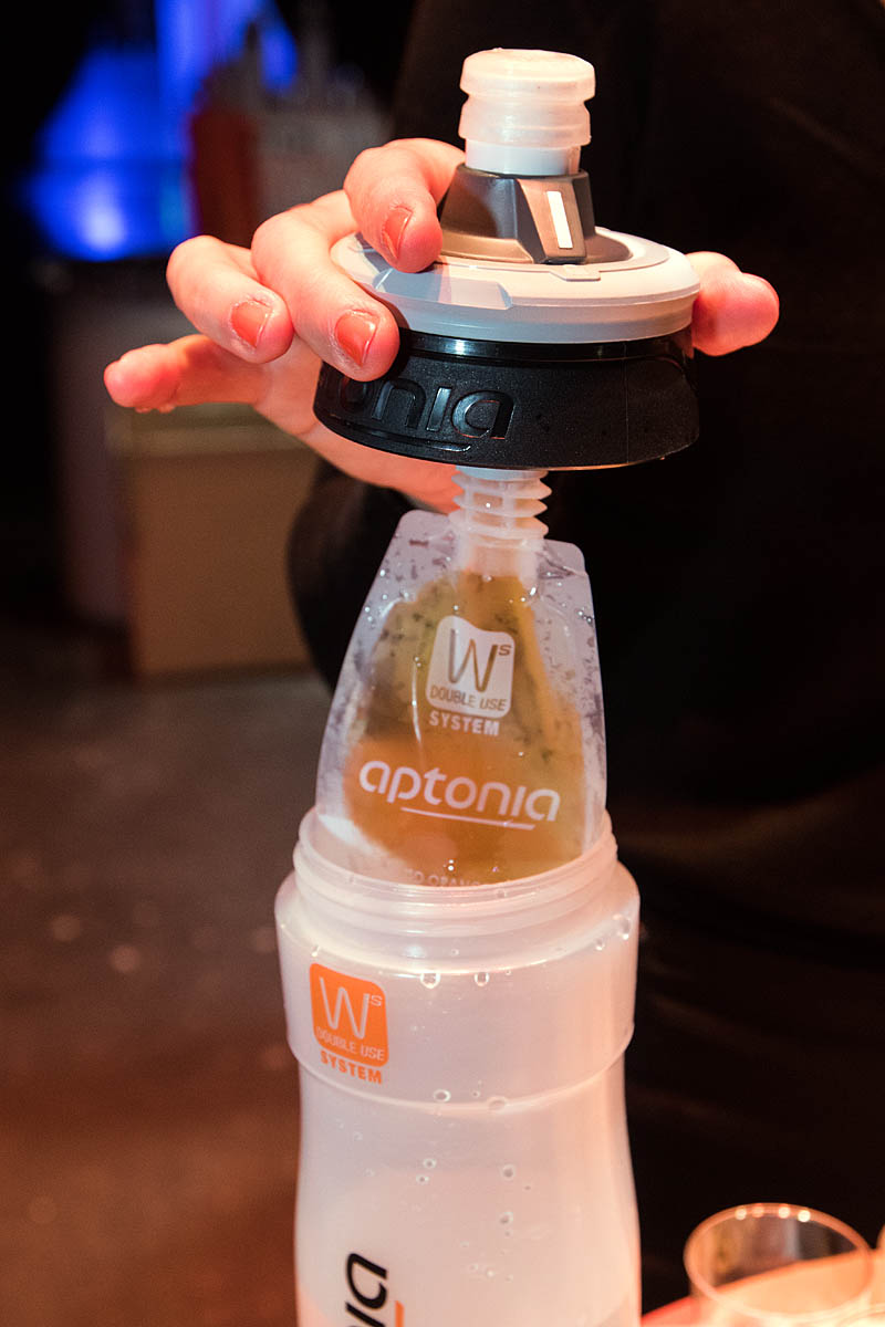 The Aptonia Double Use system uses sports drink 'pods' to allow different concentrations of energy solution to be drawn