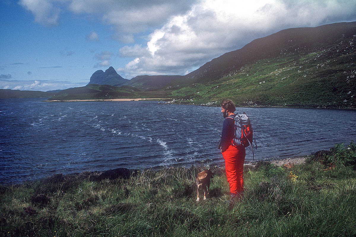 Chris Bonington stands on the shore of Cam Loch in 1986, with Suilven in the background. Photo: Chris Bonington Picture Library