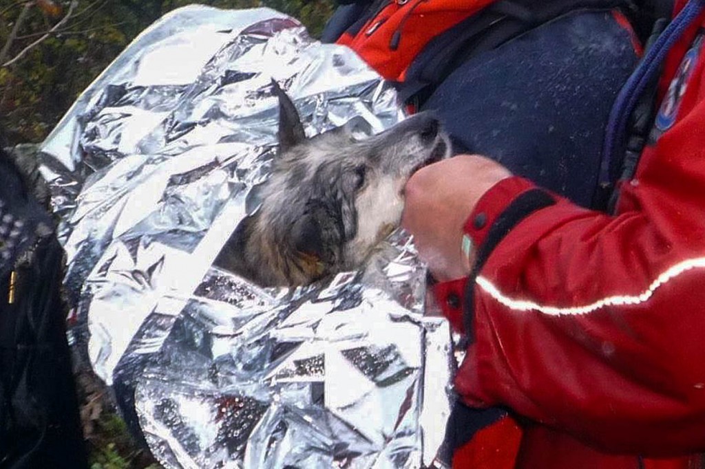 A team spokesperson said: “After a few hours of very wet searching Hilda the dog was located wet and hungry by team members and search dog Ollie.