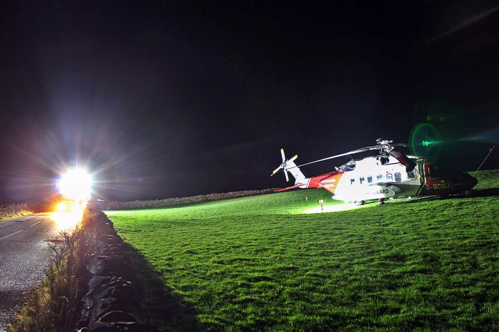 The Cave Rescue Organisation requested help from the Coastguard Sikorsky S-92 when its members were called out to a walker suffering chest pains on Ingleborough on Sunday.